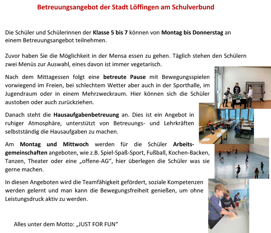Montag und Mittwoch von 14.15 – 15.35 Uhr für die Klassenstufe 5 – 7